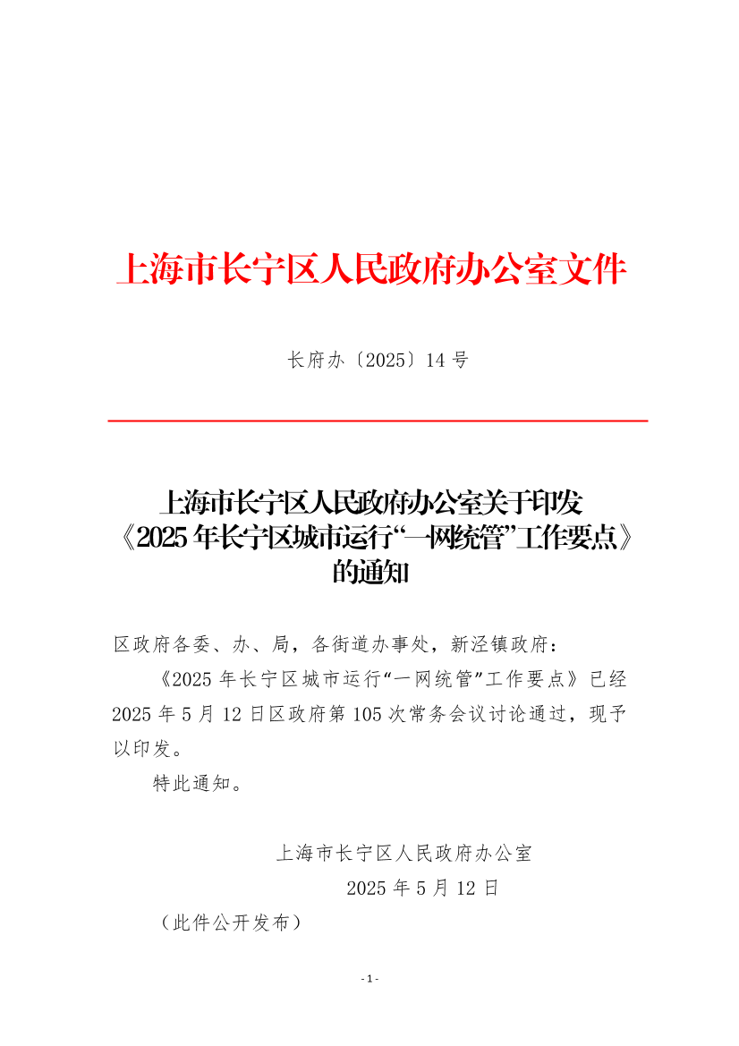 ??《2025年長(zhǎng)寧區(qū)城市運(yùn)行“一網(wǎng)統(tǒng)管”工作要點(diǎn)》已經(jīng)2025年5月12日區(qū)政府第105次常務(wù)會(huì)議討論通過,現(xiàn)予以印發(fā)。