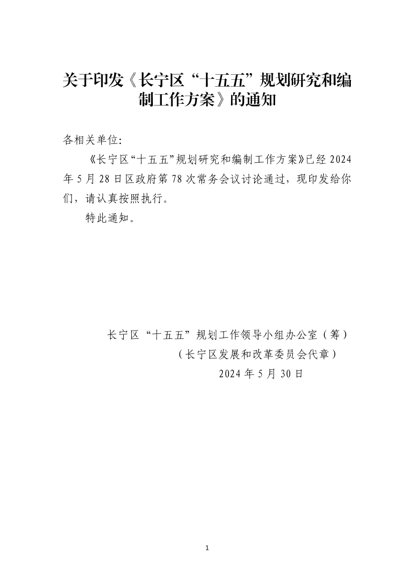 關于印發(fā)《長寧區(qū)“十五五”規(guī)劃研究和編制工作方案》的通知