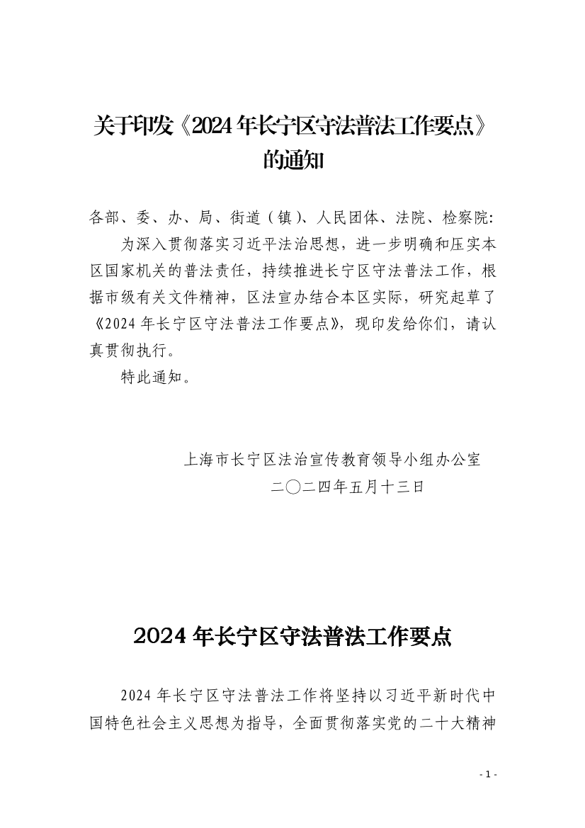 ??為深入貫徹落實習近平法治思想,進一步明確和壓實本區(qū)國家機關的普法責任,持續(xù)推進長寧區(qū)守法普法工作,根據(jù)市級有關文件精神,區(qū)法宣辦結合本區(qū)實際,研究起草了《2024年長寧區(qū)守法普法工作要點》,現(xiàn)印發(fā)給你們,請認真貫徹執(zhí)行。