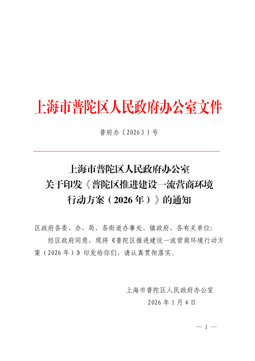 ??經(jīng)區(qū)政府同意,現(xiàn)將《普陀區(qū)推進(jìn)建設(shè)一流營(yíng)商環(huán)境行動(dòng)方案(2026年)》印發(fā)給你們,請(qǐng)認(rèn)真貫徹落實(shí)。