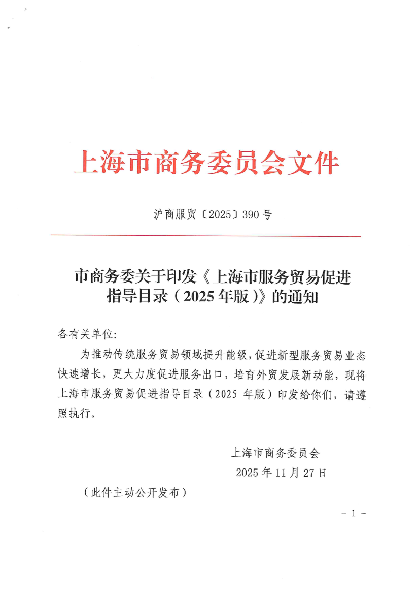 ??為推動(dòng)傳統(tǒng)服務(wù)貿(mào)易領(lǐng)域提升能級(jí),促進(jìn)新型服務(wù)貿(mào)易業(yè)態(tài)快速增長(zhǎng),更大力度促進(jìn)服務(wù)出口,培育外貿(mào)發(fā)展新動(dòng)能,現(xiàn)將上海市服務(wù)貿(mào)易促進(jìn)指導(dǎo)目錄(2025年版)印發(fā)給你們,請(qǐng)遵照?qǐng)?zhí)行。
