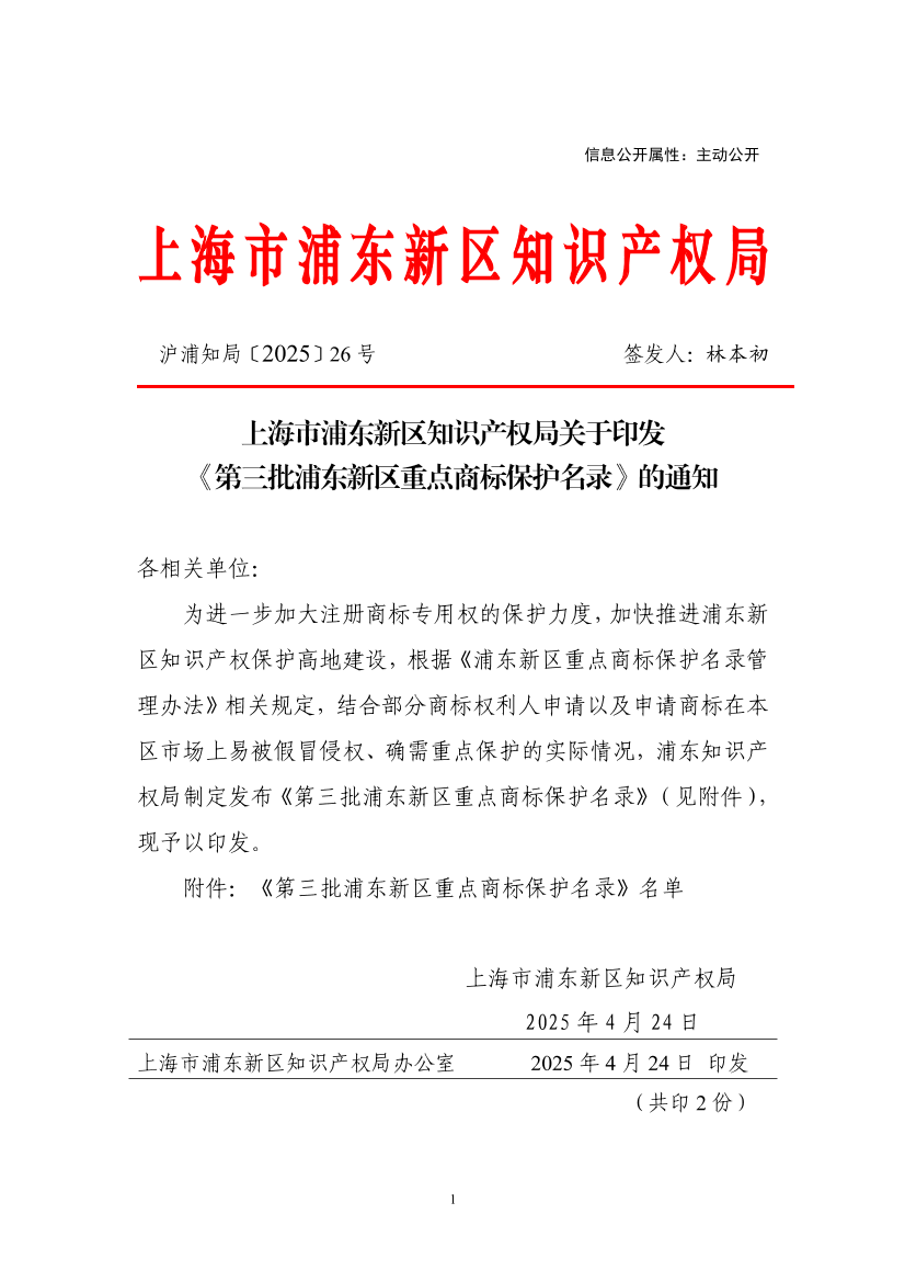 ??為進一步加大注冊商標專用權的保護力度,加快推進浦東新區(qū)知識產權保護高地建設,根據《浦東新區(qū)重點商標保護名錄管理辦法》相關規(guī)定,結合部分商標權利人申請以及申請商標在本區(qū)市場上易被假冒侵權、確需重點保護的實際情況,浦東知識產權局制定發(fā)布《第三批浦東新區(qū)重點商標保護名錄》(見附件),現(xiàn)予以印發(fā)。