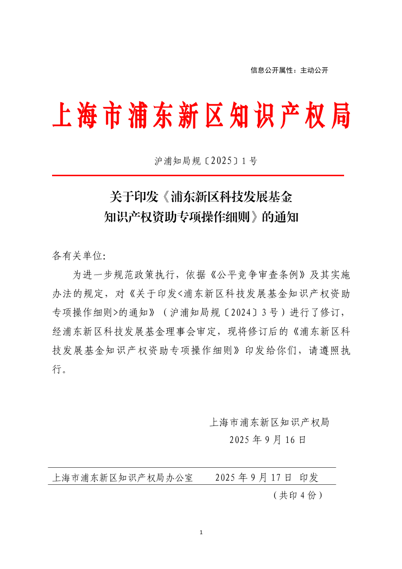 ??為進一步規(guī)范政策執(zhí)行,依據(jù)《公平競爭審查條例》及其實施辦法的規(guī)定,對《關(guān)于印發(fā)<浦東新區(qū)科技發(fā)展基金知識產(chǎn)權(quán)資助專項操作細則>的通知》(滬浦知局規(guī)〔2024〕3號)進行了修訂,經(jīng)浦東新區(qū)科技發(fā)展基金理事會審定,現(xiàn)將修訂后的《浦東新區(qū)科技發(fā)展基金知識產(chǎn)權(quán)資助專項操作細則》印發(fā)給你們,請遵照執(zhí)行。