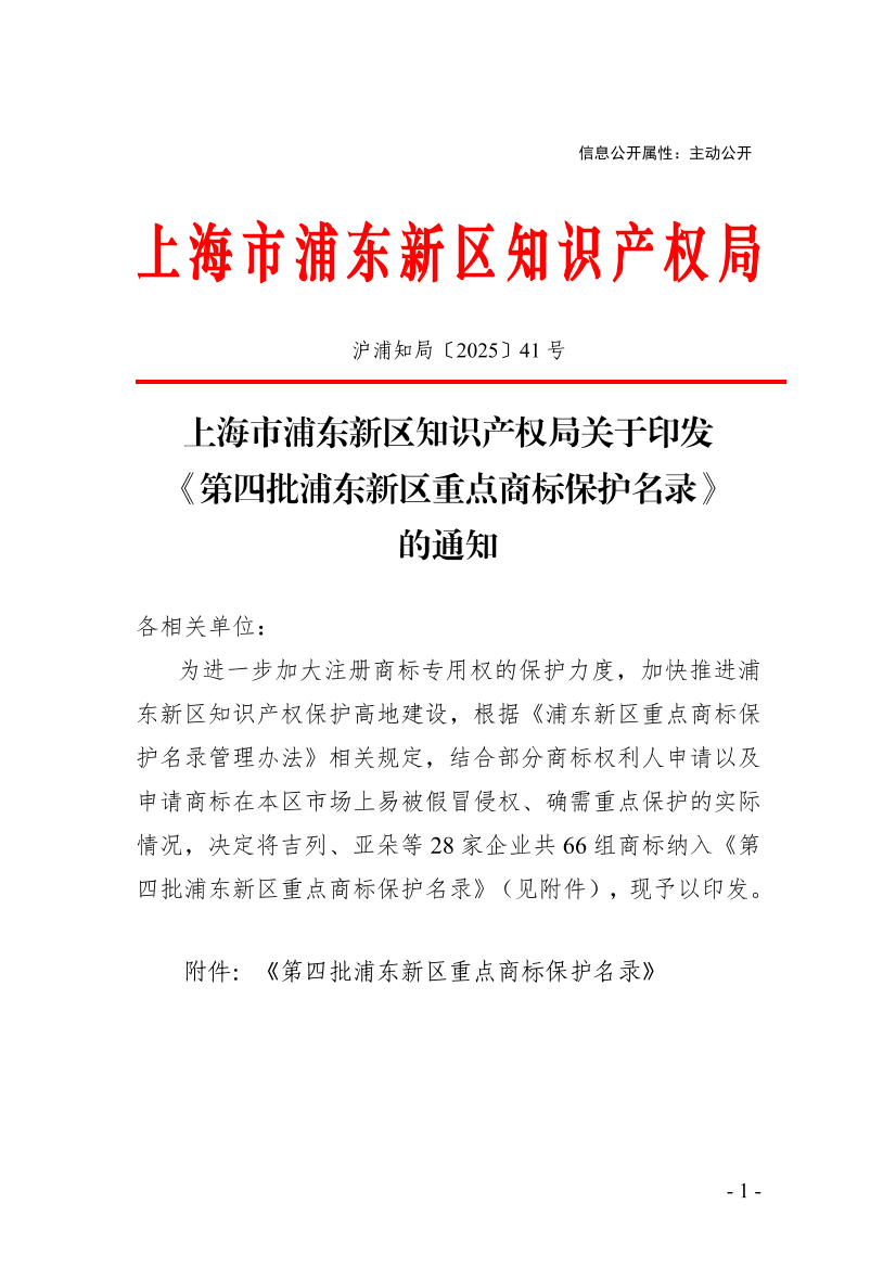 ??為進一步加大注冊商標專用權的保護力度,加快推進浦東新區(qū)知識產權保護高地建設,根據《浦東新區(qū)重點商標保護名錄管理辦法》相關規(guī)定,結合部分商標權利人申請以及申請商標在本區(qū)市場上易被假冒侵權、確需重點保護的實際情況,決定將吉列、亞朵等28家企業(yè)共66組商標納入《第四批浦東新區(qū)重點商標保護名錄》(見附件),現予以印發(fā)。