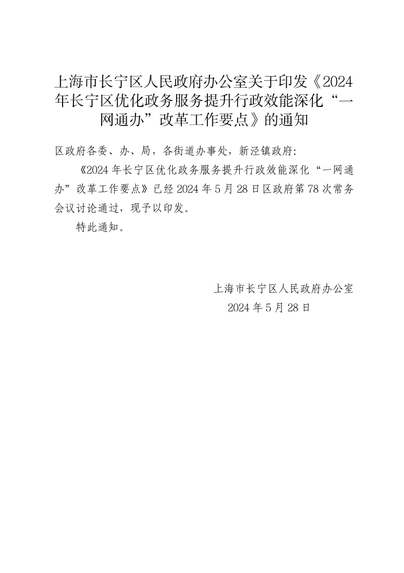 上海市長寧區(qū)人民政府辦公室關(guān)于印發(fā)《2024年長寧區(qū)優(yōu)化政務(wù)服務(wù)提升行政效能深化“一網(wǎng)通辦”改革工作要點(diǎn)》的通知