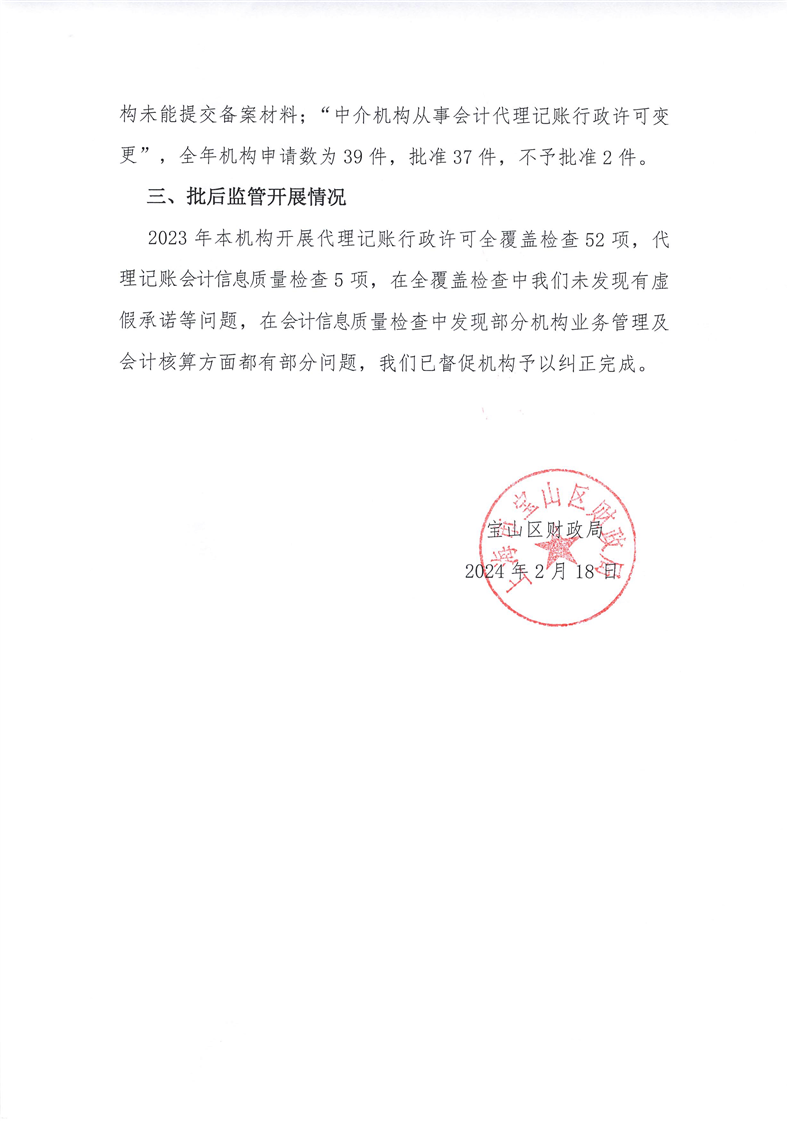 寶山區(qū)財(cái)政局2023年度行政許可實(shí)施情況年度報(bào)告