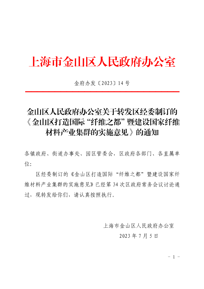 金山區(qū)打造國際“纖維之都”暨建設(shè)國家纖維材料產(chǎn)業(yè)集群的實(shí)施意見